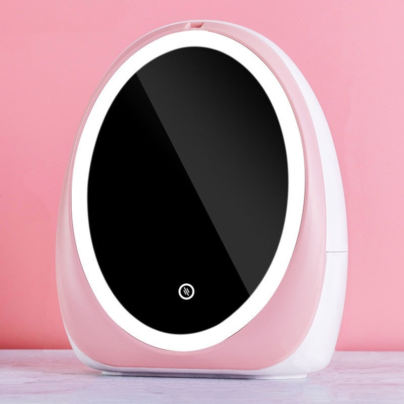 Cosmetics organizer with LED mirror / LED makeup mirror 2-in-1 - pink