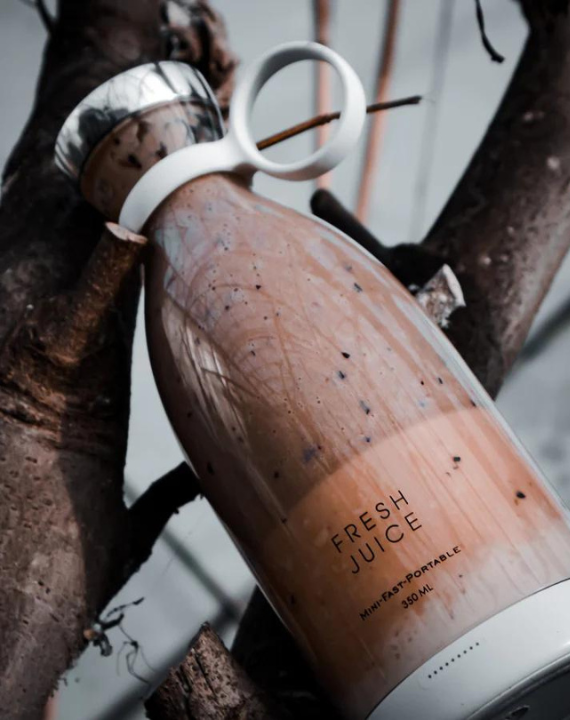Dankzij de slanke en compacte constructie is hij eenvoudig te vervoeren. De fles weegt slechts 460g en kan 380ml sap bevatten.