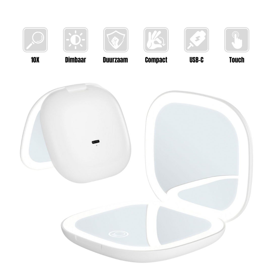 Vroeg of laat moet je inzoomen op gezichtshaar, wimpers of vlekken, en je zult merken dat je deze minispiegel tevoorschijn haalt voor een vervormingsvrije 1x lens, echte 10x vergroting. een spiegel lens en onconventioneel compact formaat. Imperfect visueel-vriendelijk! Houd er rekening mee dat we ook Natural Skylight-leds gebruiken voor echte kleur correctie, aanbevolen door visagisten