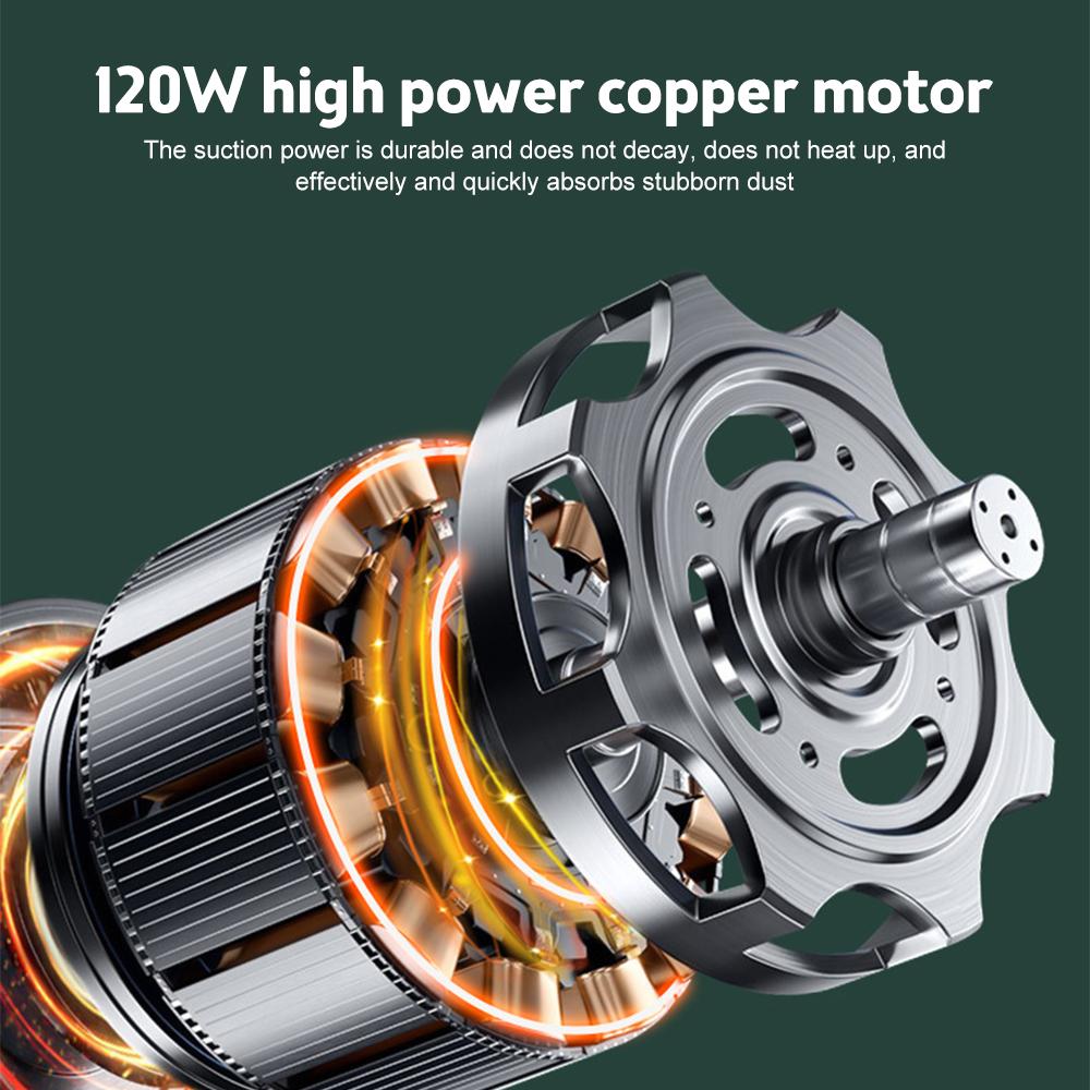 ✔️De zuigkracht van deze 120W kopermotor met hoog vermogen is duurzaam, degradeert niet, produceert geen warmte en verwijdert hardnekkig stof